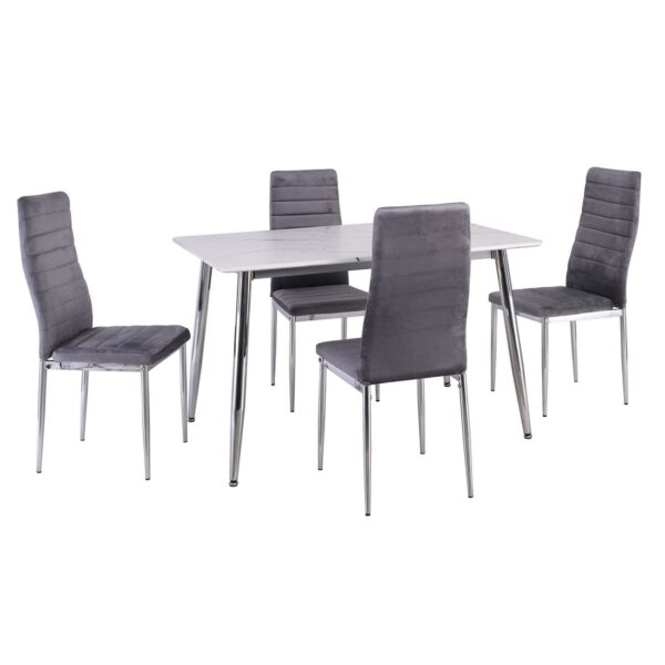JETTA-DATUM Τραπεζαρία Κουζίνας Χρώμιο, Τραπέζι Mdf Άσπρο + 4 Καρέκλες Velure Γκρι (Table:120x80x75 Chair:40x50x95)