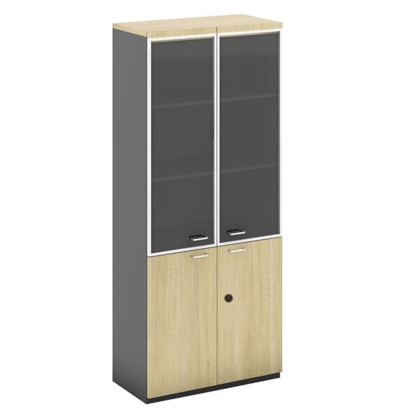ΒΙΒΛΙΟΘΗΚΗ Γραφείου με Πόρτες Γυάλινες, Ντουλάπι Δίφυλλο, Απόχρωση Dark Grey – Beech (80x40x211cm)