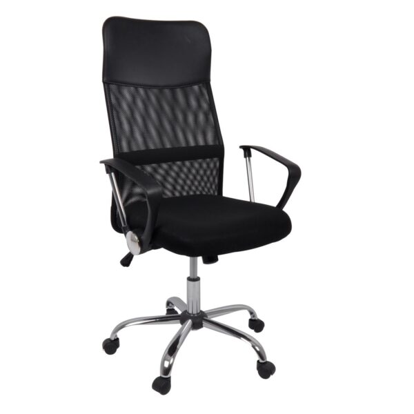 BF2400-PVC Πολυθρόνα Γραφείου Διευθυντή, Βάση Χρώμιο, Pvc Μαύρο – Mesh Μαύρο (61x68x108/118cm)