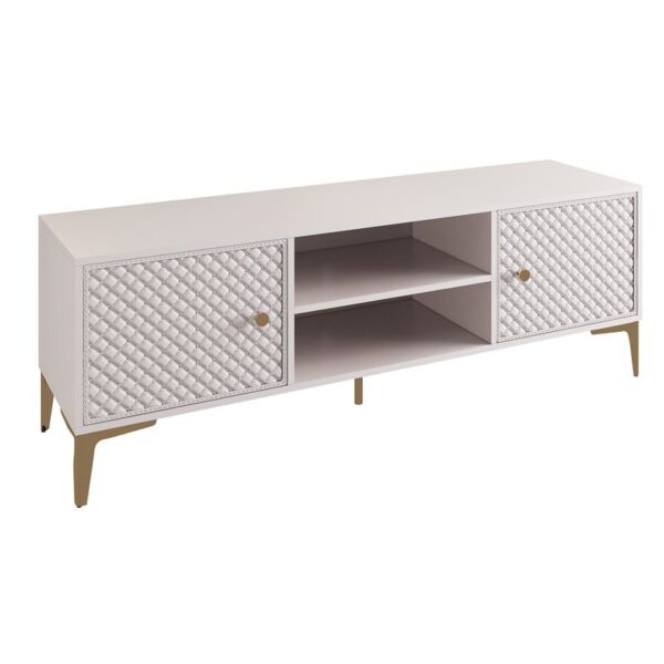 LANA Έπιπλο TV Απόχρωση Εκρού, με πρόσοψη Pu Καπιτονέ (140x40x50cm)