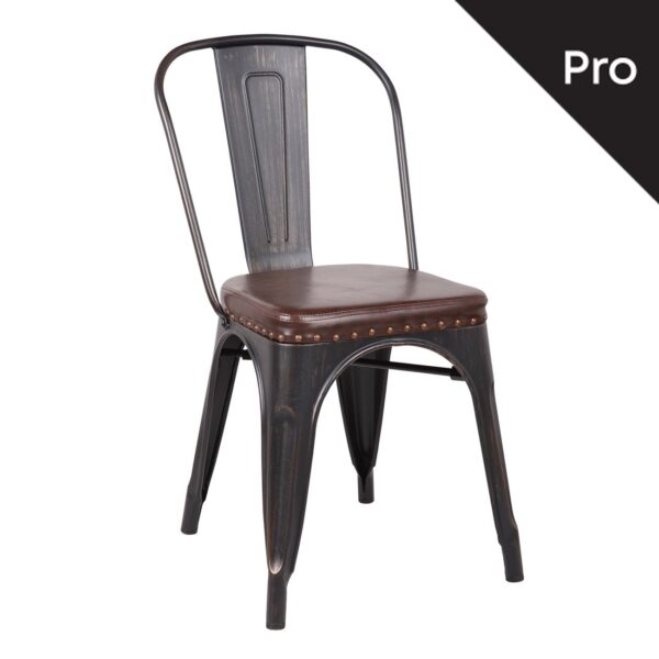 RELIX Καρέκλα-Pro, Στοιβαζόμενη, Μέταλλο Βαφή Antique Black, Pu Σκούρο Καφέ (45x51x82cm)
