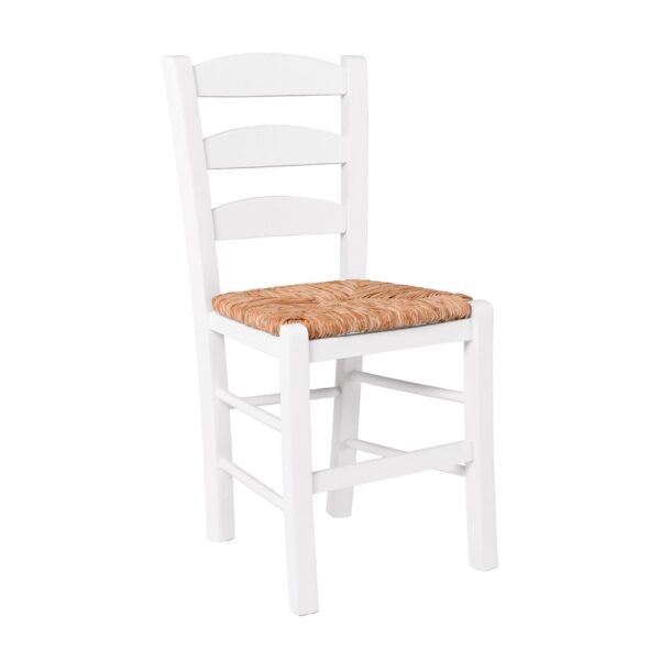 ΣΙΦΝΟΣ Καρέκλα Οξιά Βαφή Εμποτισμού Λάκα Άσπρο, Κάθισμα Ψάθα (41x45x88cm)