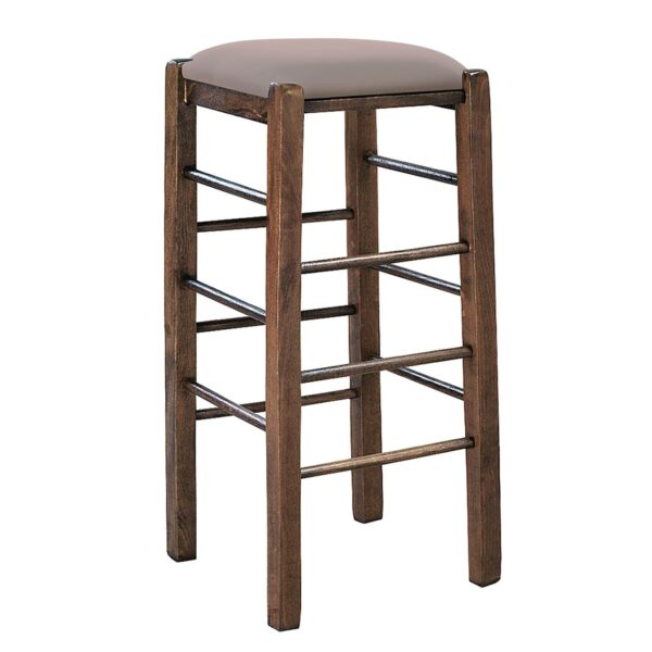 ΤΑΒΕΡΝΑΣ Σκαμπό BAR, Οξιά Βαφή Εμποτισμός Καρυδί, Κάθισμα Pu Cappuccino (35x35x81cm)