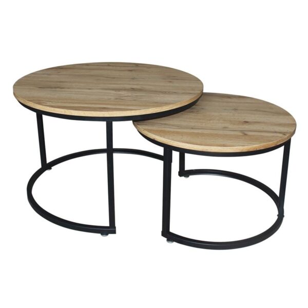 BOZZO Set-2 Τραπεζάκια Σαλονιού-Καθιστικού, Μέταλλο Μαύρο, Απόχρωση Sonoma (Φ.50 H.41cm + Φ.70 H.46cm)
