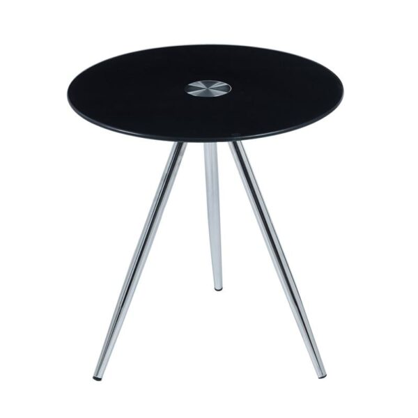 MABEL Τραπεζάκι Βοηθητικό Μέταλλο Χρώμιο – Γυαλί Μαύρο Tempered 8mm (Φ50 H.51cm)
