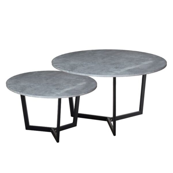 TEDDY Set-2 Τραπεζάκια Σαλονιού-Καθιστικού, Μέταλλο Μαύρο, Απόχρωση Cement (Φ.80 H.45cm + Φ.60 H.35cm)