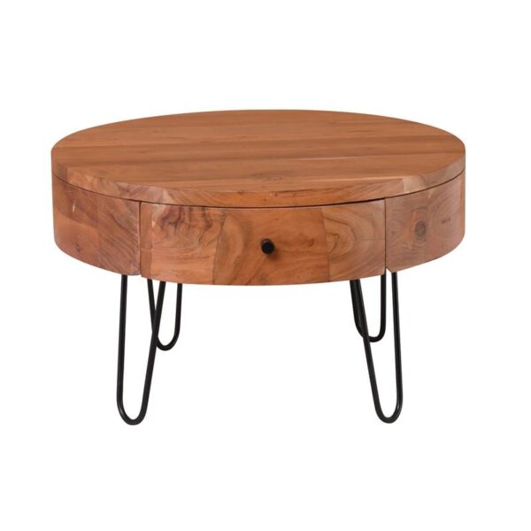 MATRI Τραπεζάκι Σαλονιού Καθιστικού, Μέταλλο Βαφή Μαύρο, Ξύλο Ακακία Φυσικό (Φ76xH.45cm)