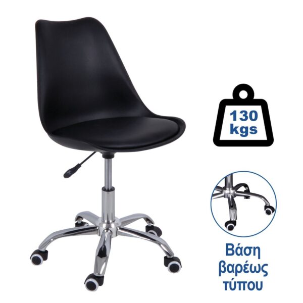 MARTIN Καρέκλα Γραφείου, Βάση Χρώμιο Βαρέως Τύπου, PP & Pu Μαύρο, Μονταρισμένη Ταπετσαρία (51x55x78/88cm)