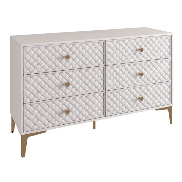 LANA Συρταριέρα με 6 Συρτάρια, Απόχρωση Εκρού, με πρόσοψη Pu Καπιτονέ (120x40x80cm)
