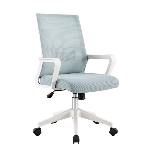 BF2965 Πολυθρόνα Γραφείου Ύφασμα Γκρι-Μπλε Mesh, Βάση PP Άσπρο (63x58x97/107cm)