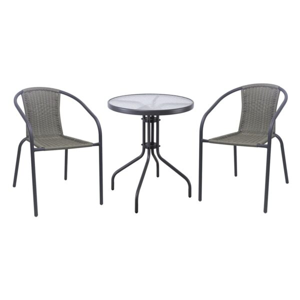 BALENO Set Κήπου – Βεράντας: Τραπέζι + 2 Πολυθρόνες Μέταλλο Ανθρακί, Wicker Mixed Grey (Table:60x60x70 Seat:53x58x77)