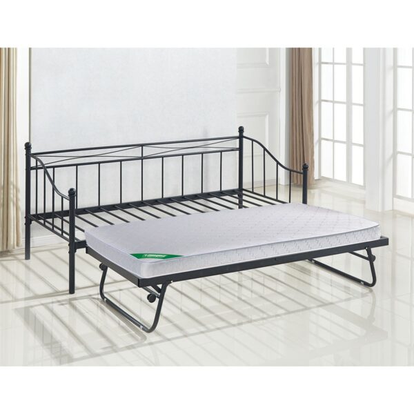MARIN Set: Daybed (για στρώμα 90×190) + Βοηθητικό Κρεβάτι με Στρώμα 185×85 Μέταλλο Μαύρο (Κρεβάτια:198x97x93+185x85x36cm)
