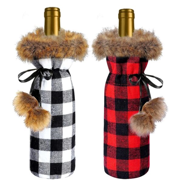 Θήκη Κρασιού Καρώ με Γουνάκι 30x14cm Xmasfest 1133639