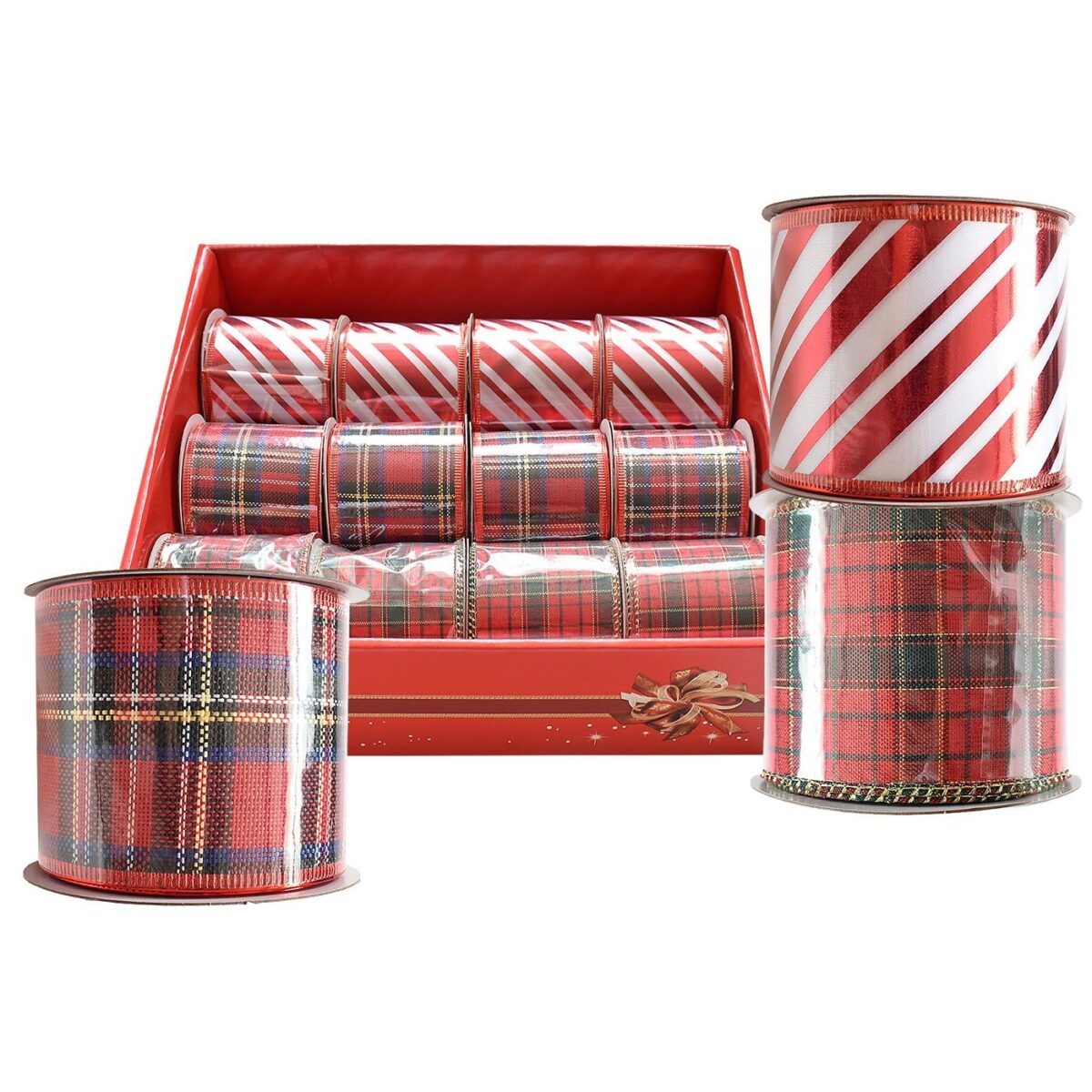 (4 καρό + 4 καρό + 4 ριγέ) κορδέλα χριστουγέννων 6,3cm x5,5m