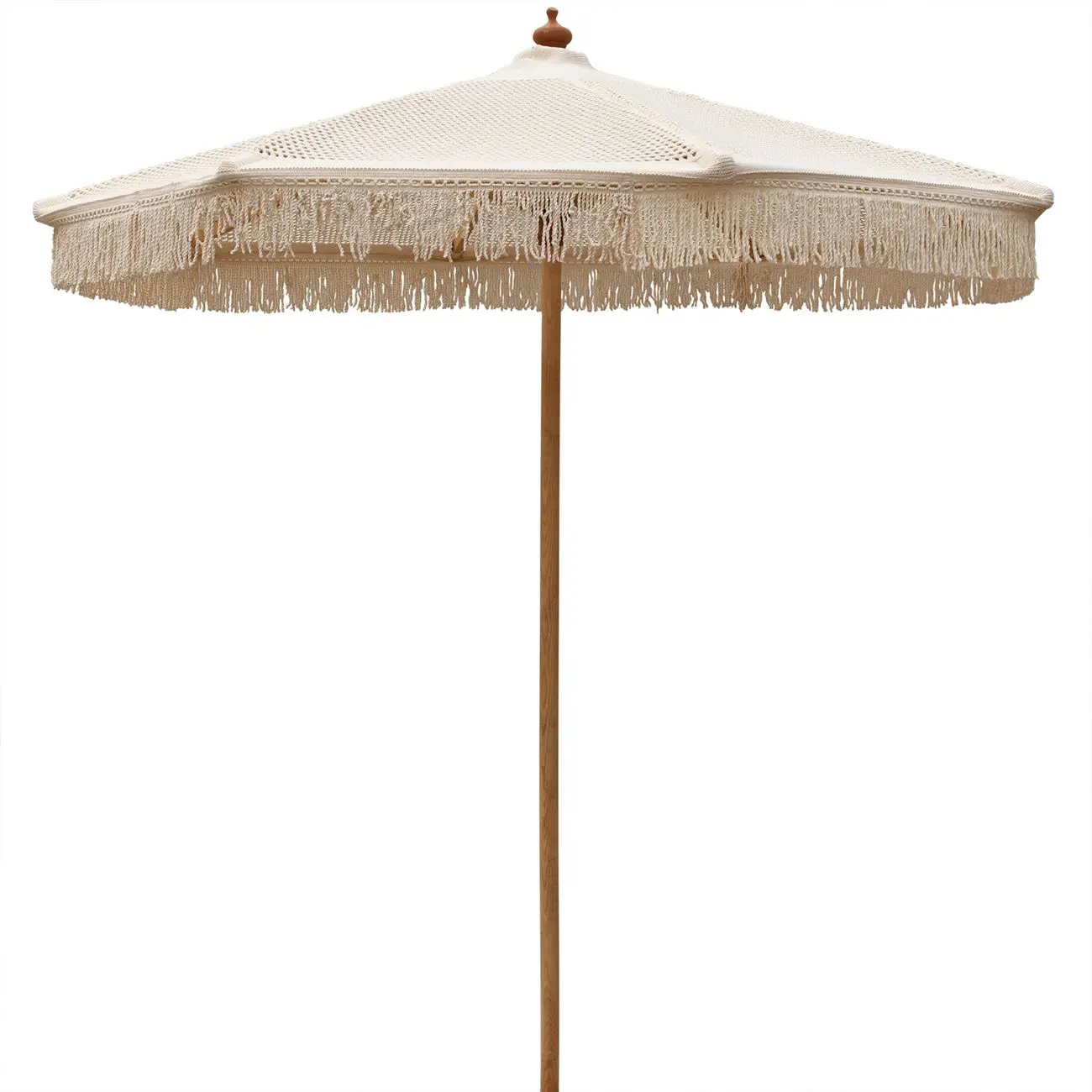 ΟΜΠΡΕΛΑ Ξύλινη – Οξιά Φ200cm, Πλεκτό Μακραμέ Μπεζ