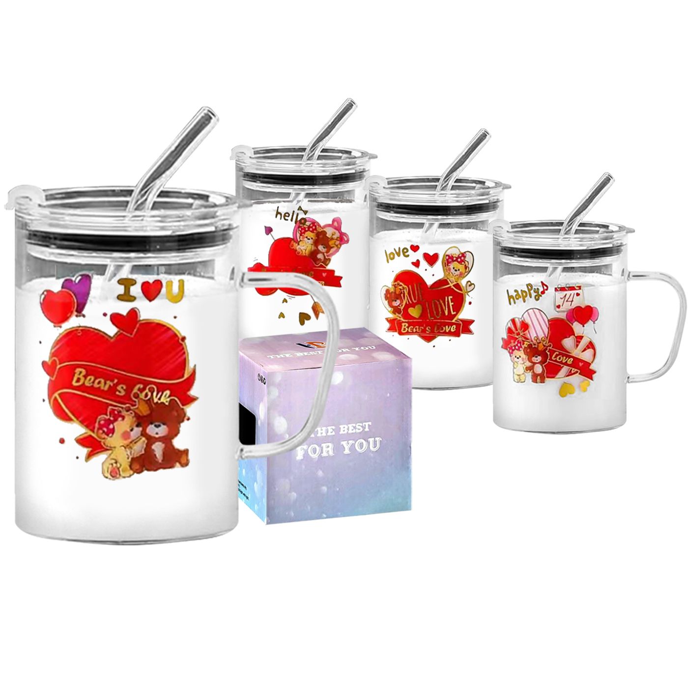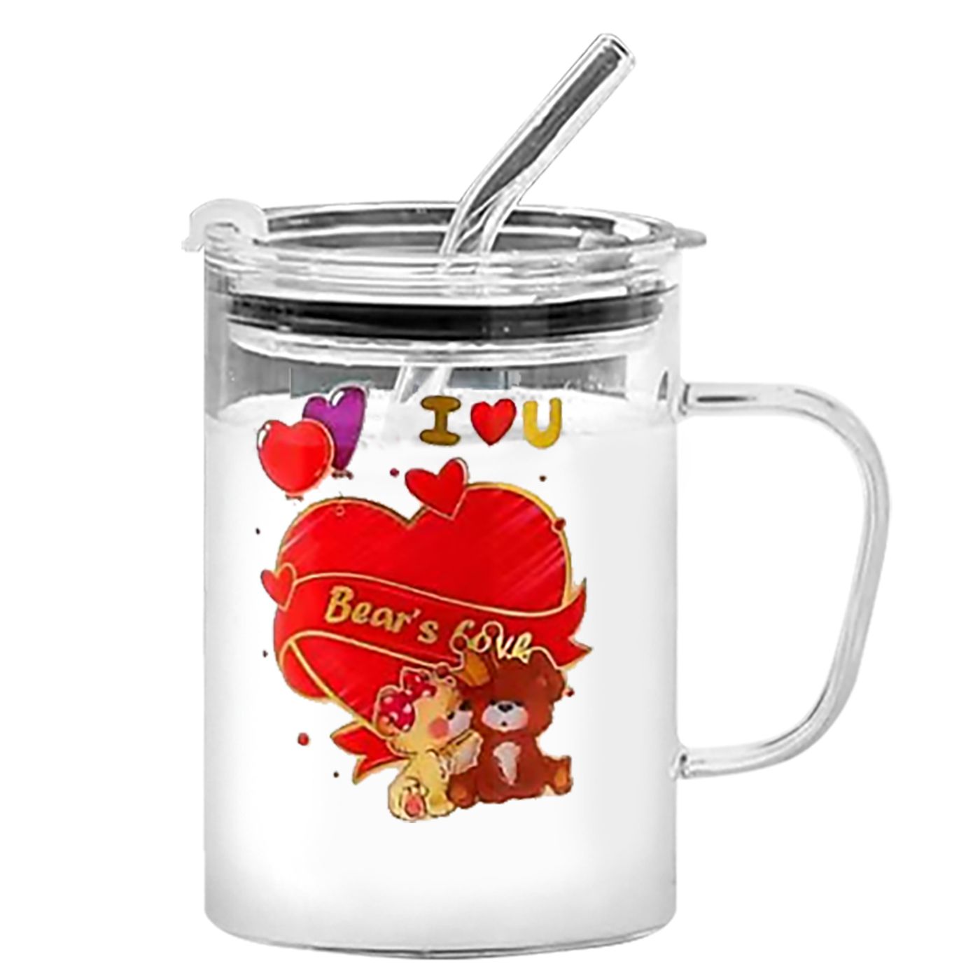 Σετ Κούπα Γυάλινη, Καλαμάκι, Καπάκι Βαλεντίνου 400 ml 400ml Homie 423101