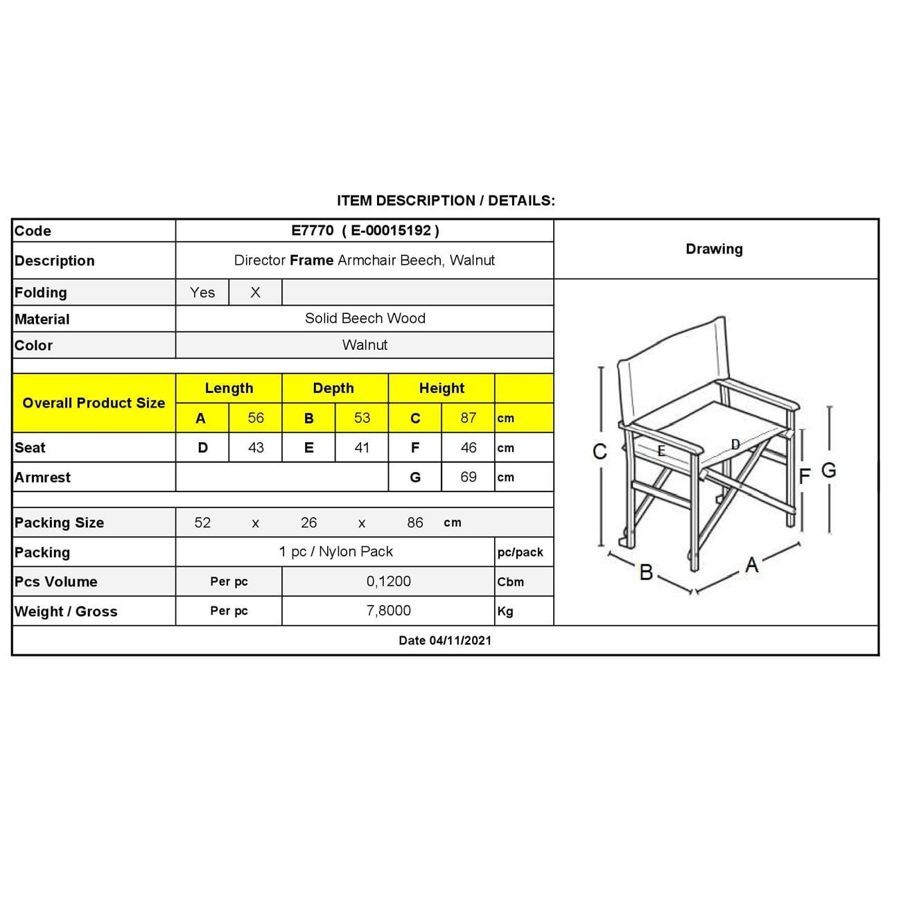 Ε7770Ε Σκηνοθέτη Σκελετός Πολυθρόνας Οξιά, Εμποτ.Μελί
