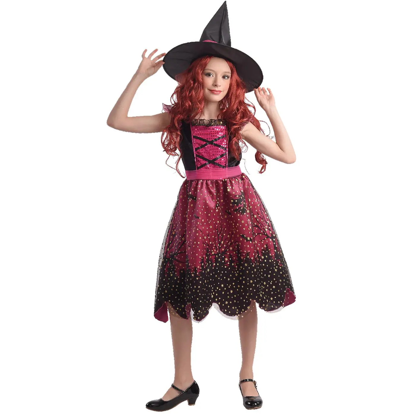 Ροζ μάγισσα. Περιέχει:φόρεμα, καπέλο