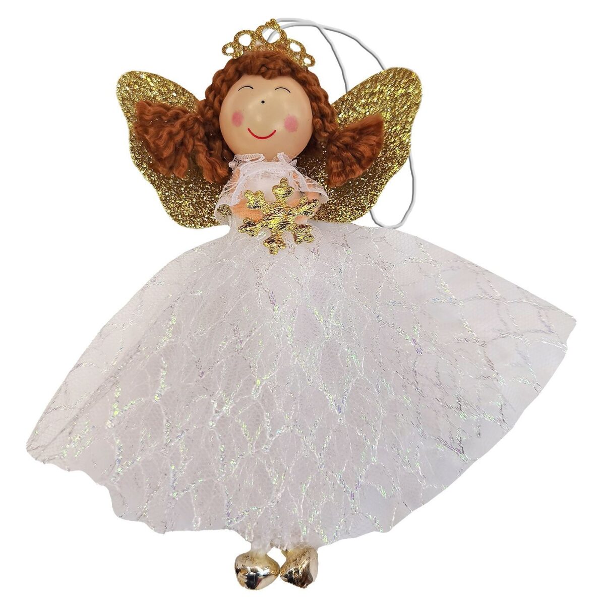 Στολίδι Αγγελούδι Δαντέλα Φόρεμα Λευκό 18cm Xmasfest 1133809
