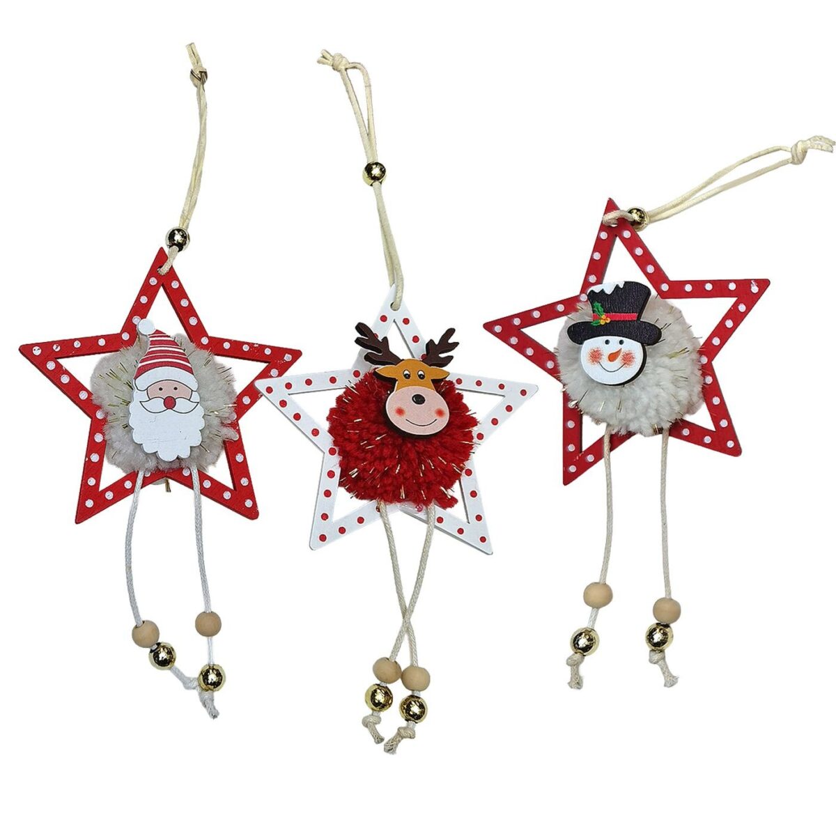 Στολίδι Ξύλινο Αστέρι με Φουντωτή Μπάλα 18x10cm Xmasfest 1134033
