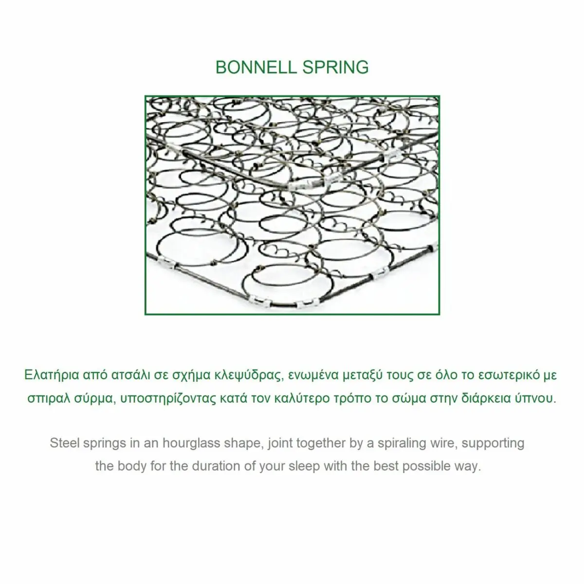 Το συγκεκριμένο στρώμα είναι με ελατήρια Bonnel της εταιρείας Woodwell από ατσάλι σε σχήμα κλεψύδρας, ενωμένα μεταξύ τους σε όλο το εσωτερικό του με σπιράλ σύρμα, υποστηρίζοντας κατά τον καλύτερο τρόπο το σώμα στη διάρκεια του ύπνου.