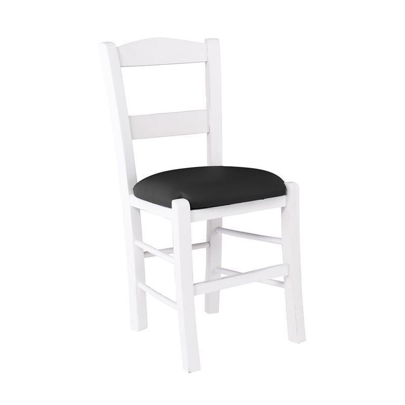 ΣΥΡΟΣ Καρέκλα Οξιά Βαφή Εμποτισμού Λάκα Άσπρο, Κάθισμα Pu Μαύρο