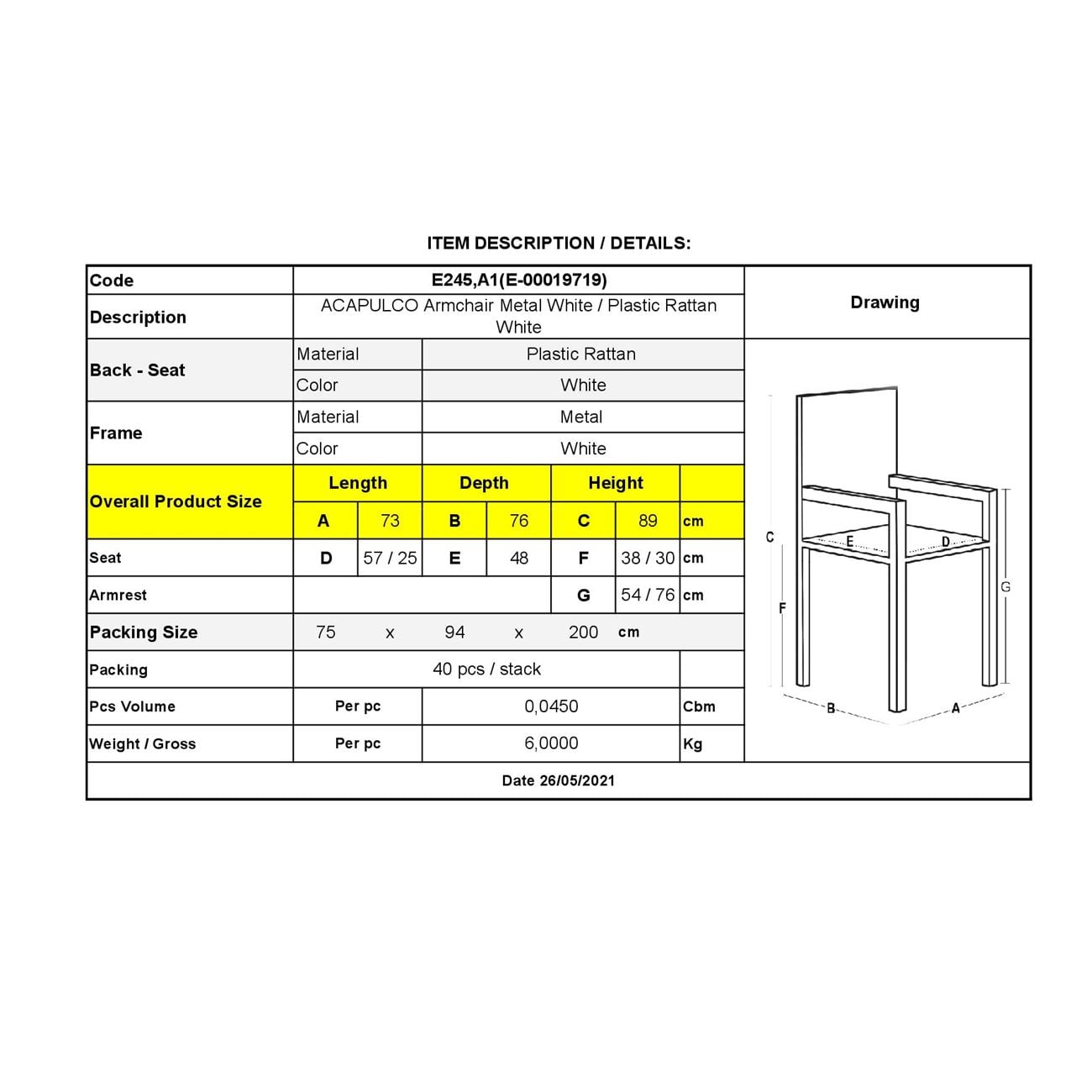 Ε245,Α1 ACAPULCO Πολ.Μεταλ.Άσπρο, Plastic Rattan Άσπρο