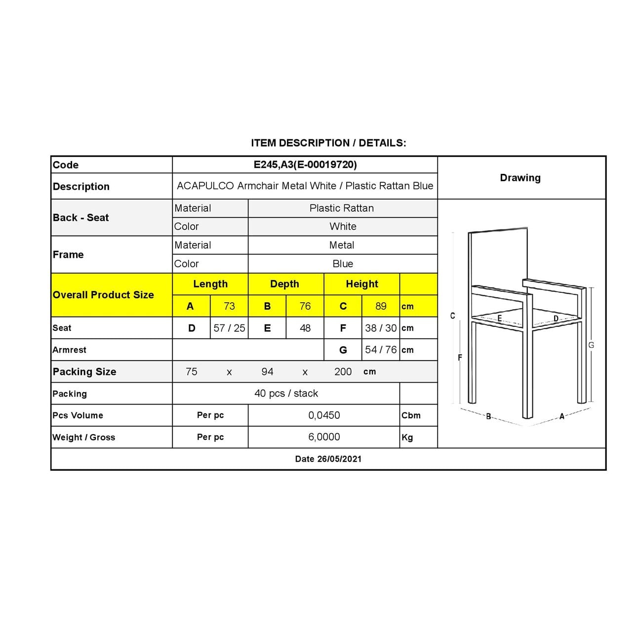 Ε245,Α3 ACAPULCO Πολ.Μεταλ.Άσπρο, Plastic Rattan Μπλε