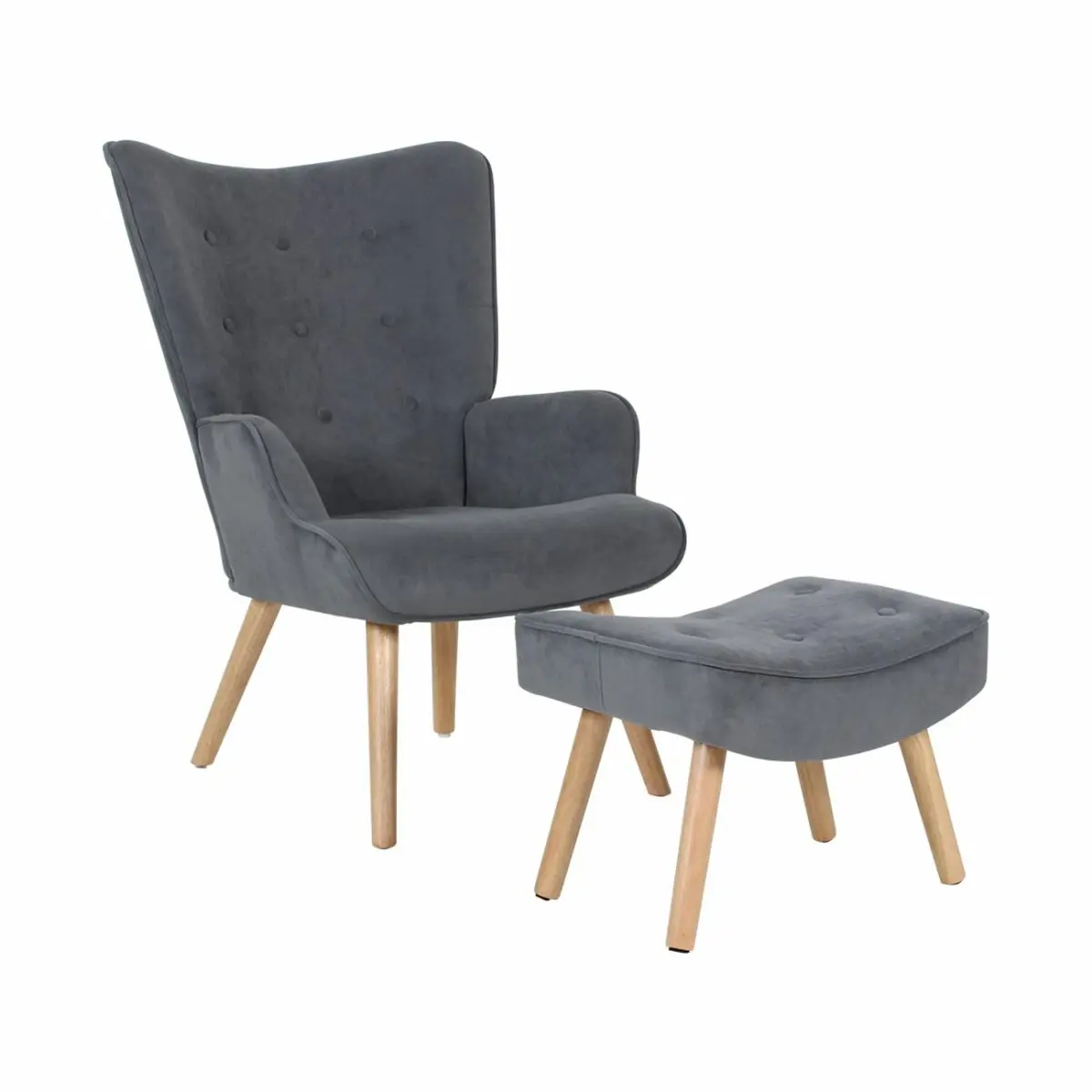 Ε7141,7 ALMA Set Πολυθρόνα + Σκαμπό Φυσικό/Ύφασμα Velure Γκρι (K/D)