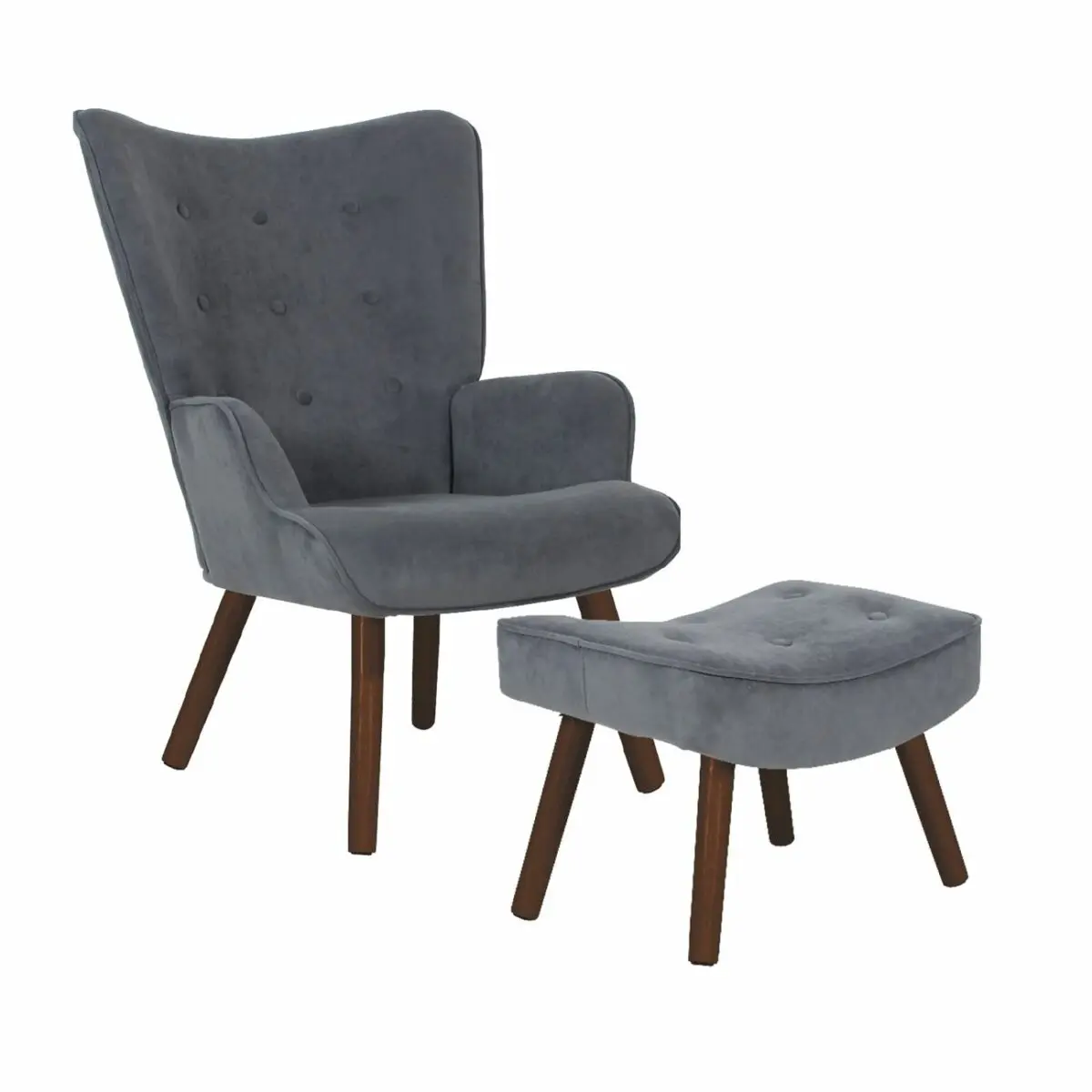 Ε7141,7Κ ALMA Set Πολυθρόνα + Σκαμπό Καρυδί/Ύφασμα Velure Γκρι (K/D)