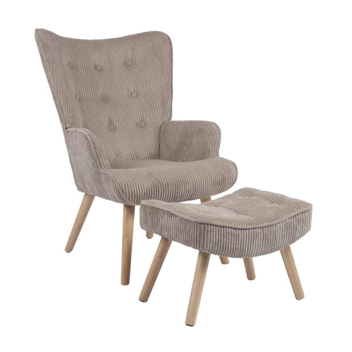 ALMA Πολυθρόνα – Μπερζέρα με Σκαμπό – Υποπόδιο Φυσικό Ύφασμα Κοτλέ Ανοιχτό Καφέ, K/D