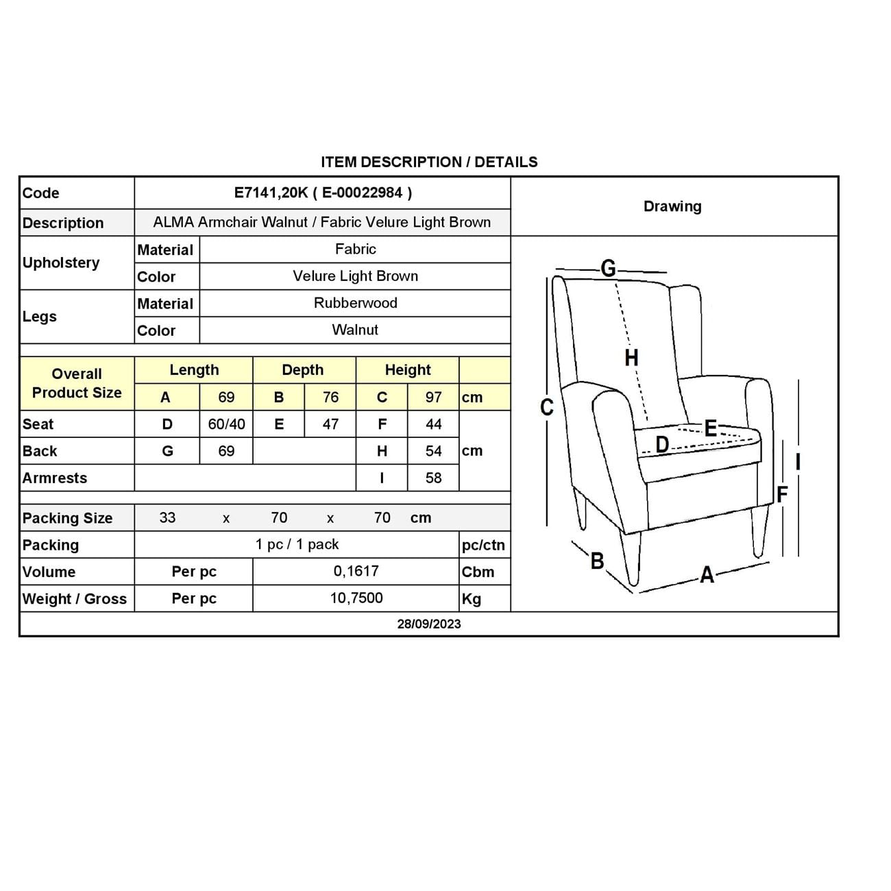 Ε7141,20Κ ALMA Πολυθρόνα Καρυδί/Ύφ.Velure Αν.Καφέ (K/D)