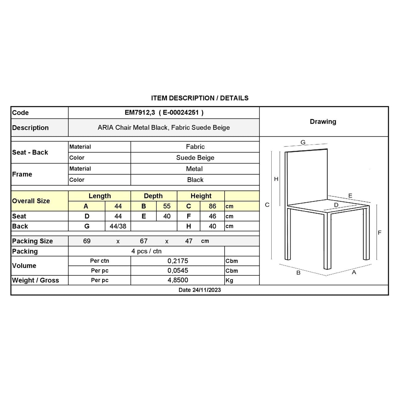 ΕΜ7912,3 ARIA Καρέκλα Μέταλ.Μαύρο/Ύφασμα Suede Μπεζ
