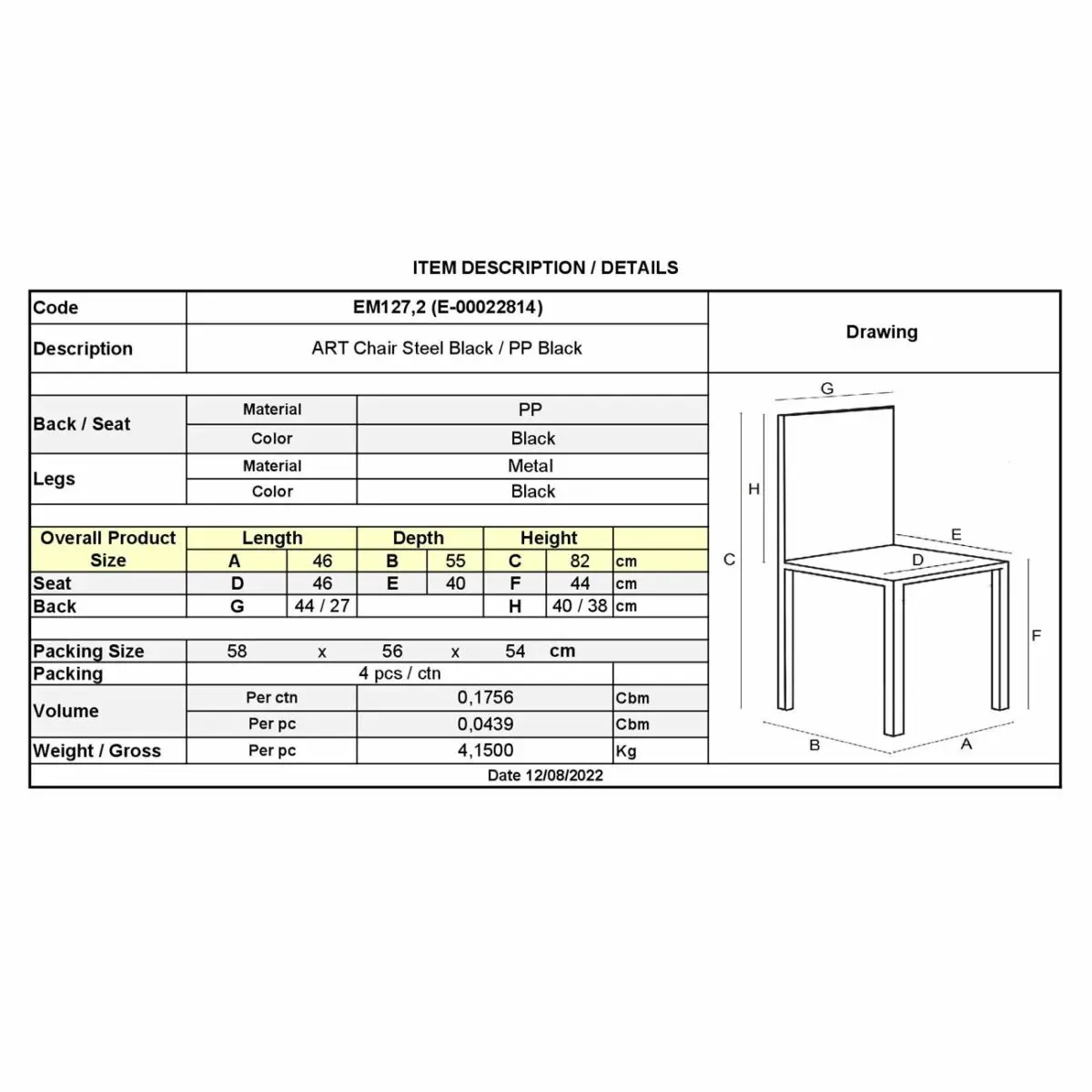 ΕΜ127,2 ART Καρέκλα Mέταλλο Βαφή Μαύρο / PP Μαύρο
