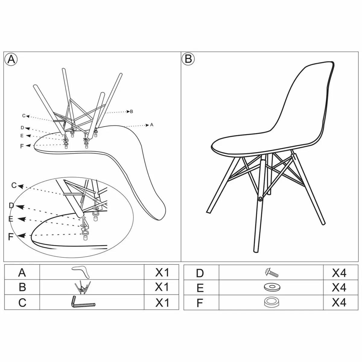 ΕΜ123,2W ART Wood Καρέκλα PP Μαύρο