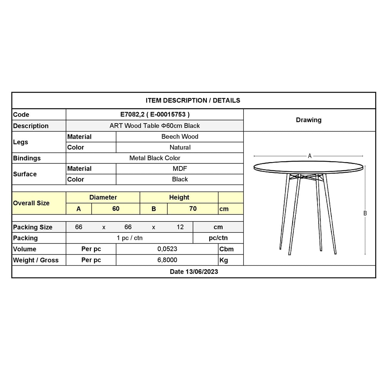 Ε7082,2 – ART Wood Τραπέζι Φ60cm Μαύρο