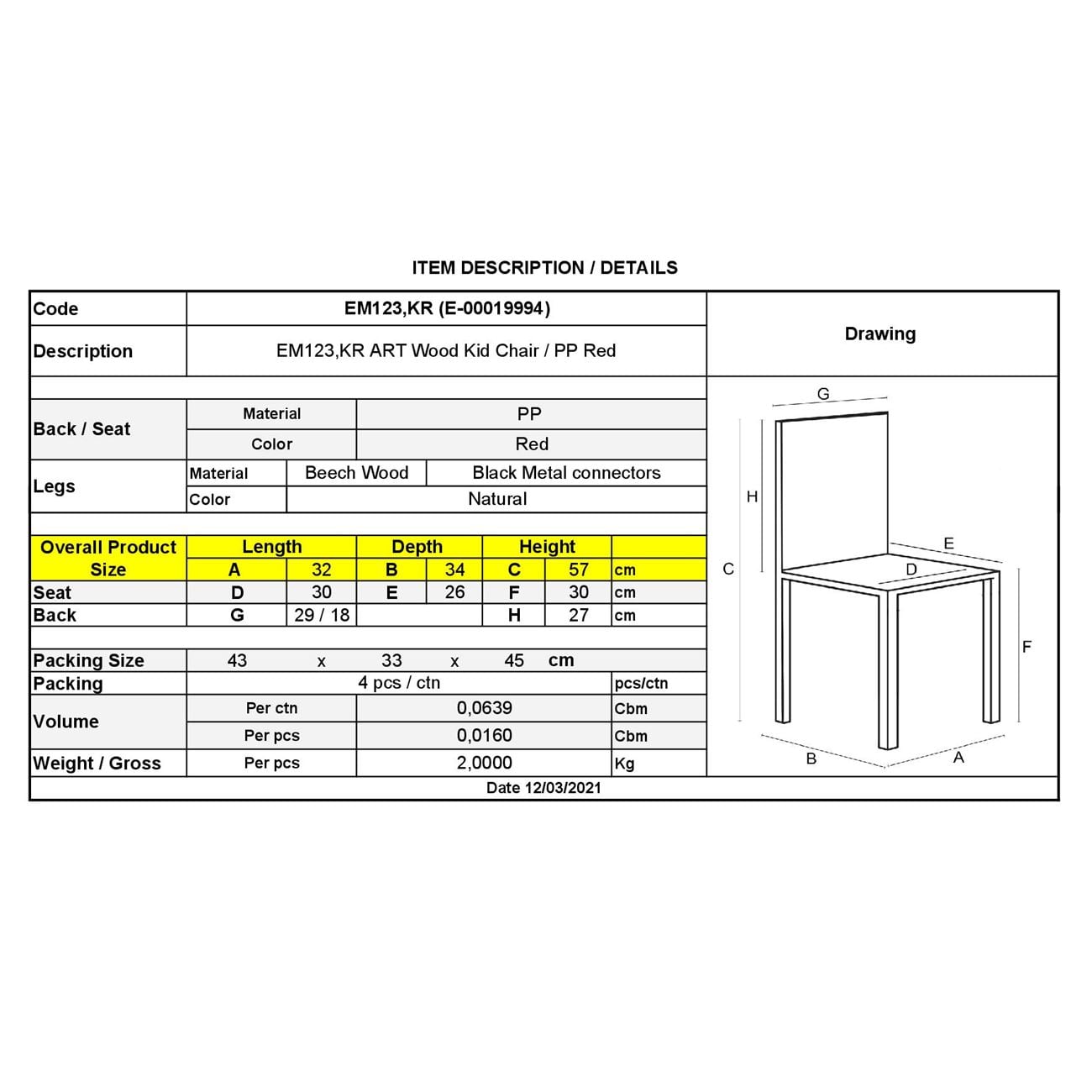 ΕΚ723,R – ART Wood Kid Καρέκλα PP Κόκκινο