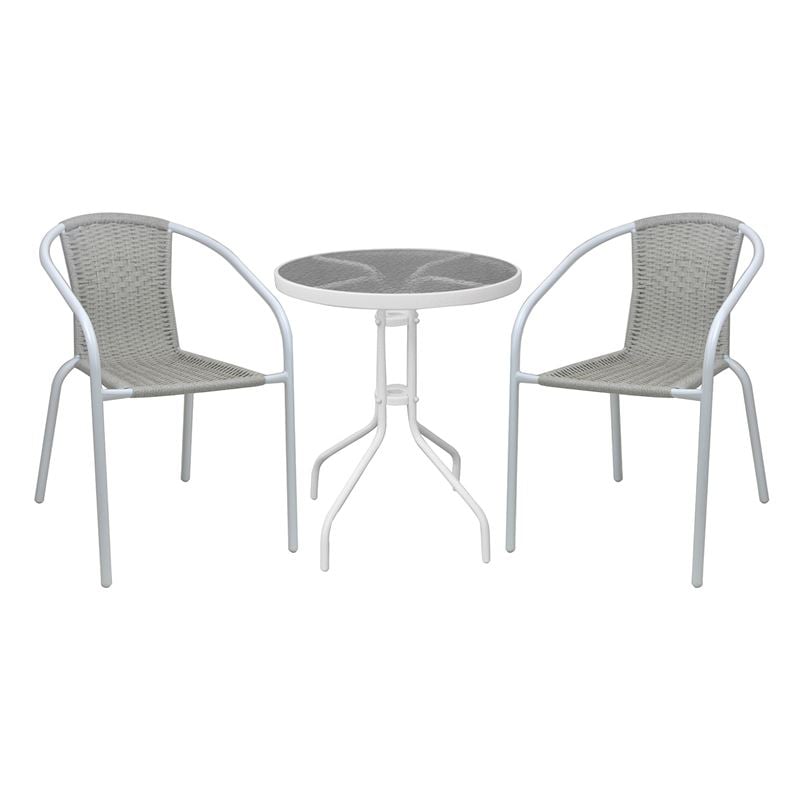 Ε240,8W BALENO-W Set (Τραπ.Φ60cm+2 Πολ) Μεταλ.Άσπρο/Beige Wicker