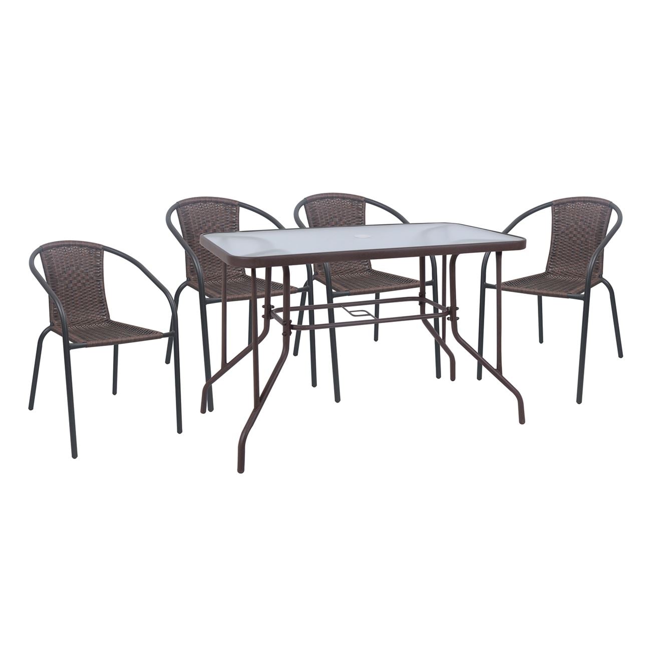 Ε240,3W BALENO-W Set (Τραπ.110x60cm+4 Πολ) Μεταλ.Καφέ/Brown Wicker
