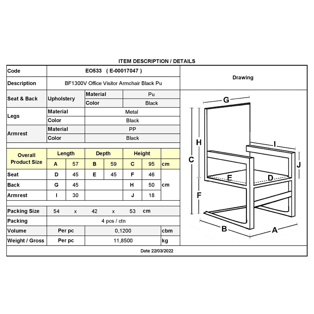 ΕΟ533 BF1300V Πολυθρόνα Επισκέπτη Μαύρο