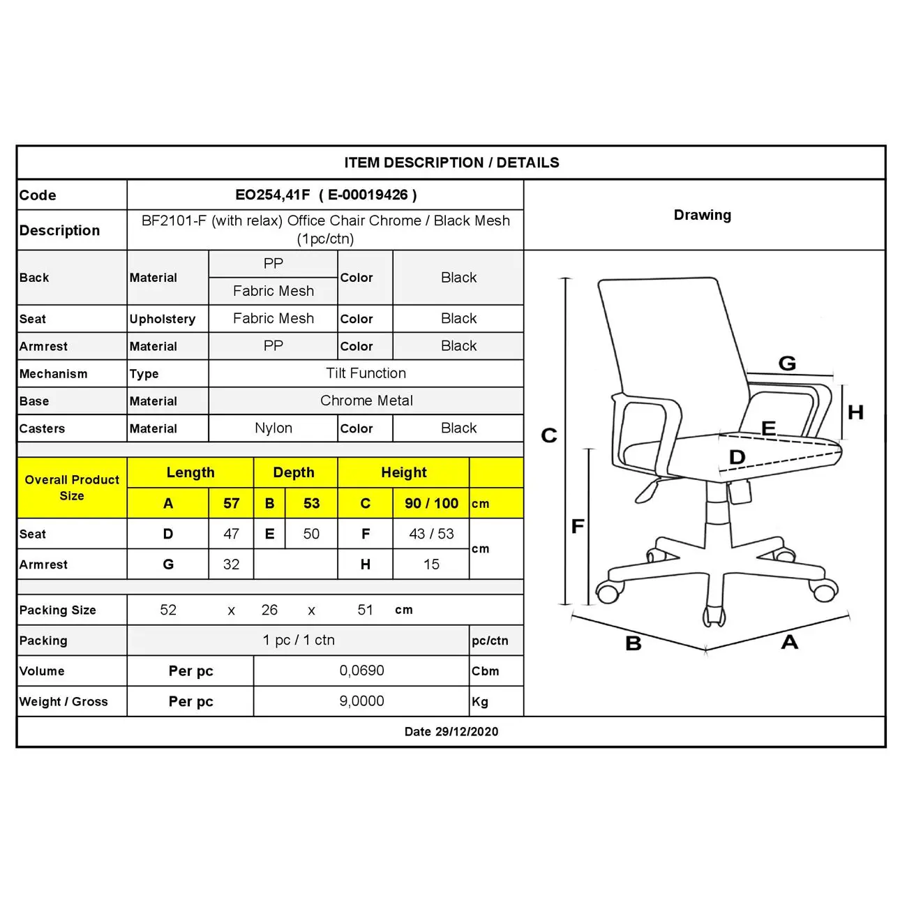 ΕΟ254,41F BF2101-F (με ανάκλιση) Χρώμιο Πολυθρόνα Μαύρο Mesh