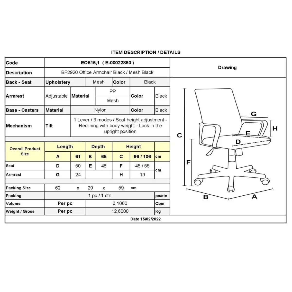 ΕΟ515,1 BF2920 Πολυθρόνα Μαύρο Mesh