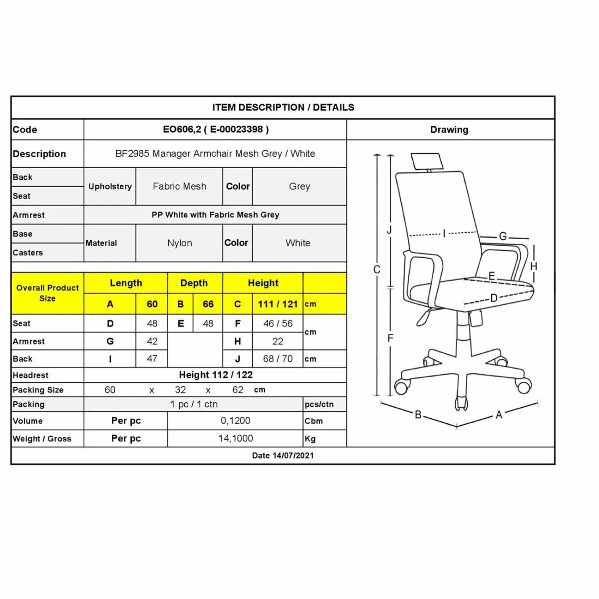 ΕΟ606,2 BF2985 Πολυθρόνα Διευθυντή Άσπρο/Mesh Γκρι