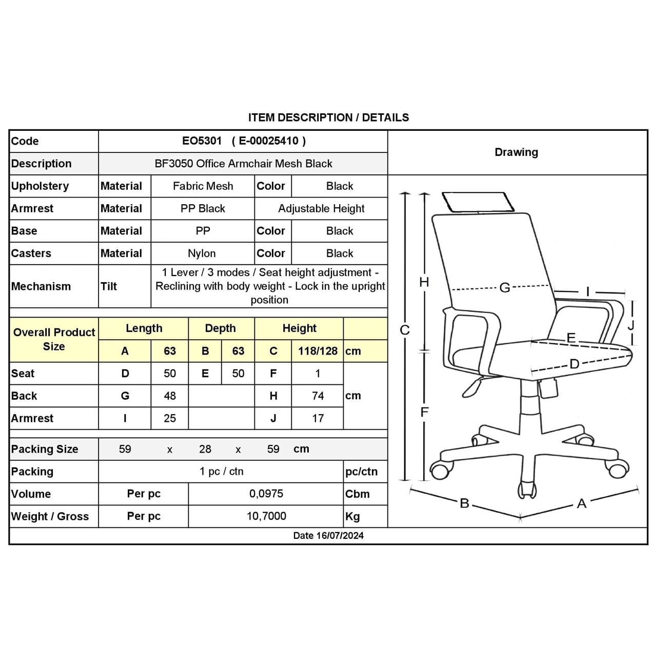 ΕΟ5301 BF3050 Πολυθρόνα Mesh Μαύρο