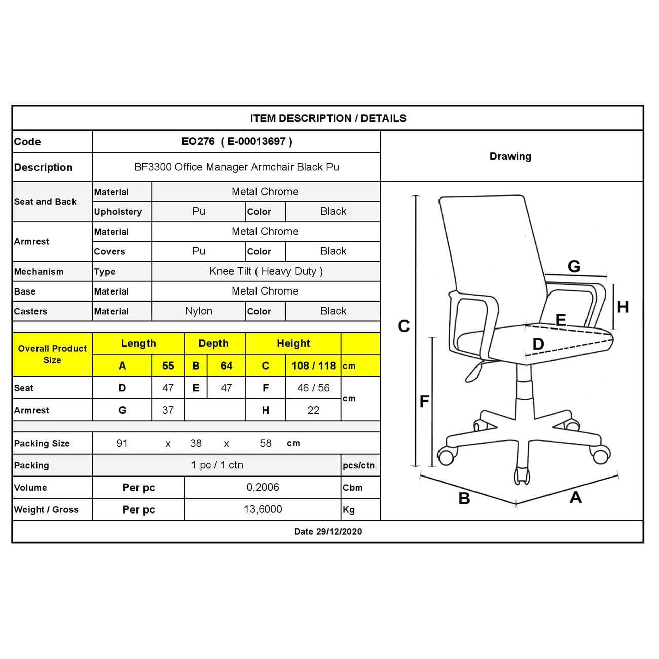 ΕΟ276 BF3300 Πολυθρόνα Διευθ.Μαύρο