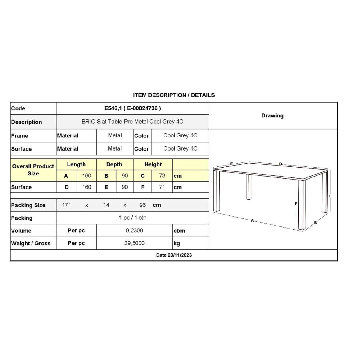 Ε546,1 BRIO Slat Τραπέζι-Pro 160x90cm Μεταλλικό Cool Grey 4C