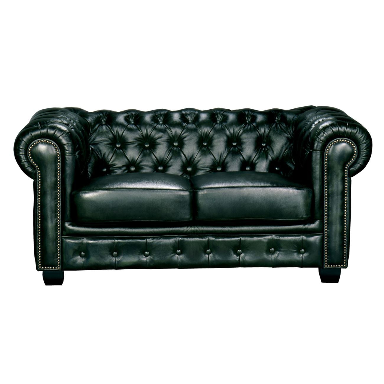 CHESTERFIELD Birmingham Καναπές 2Θέσιος Σαλονιού Καθιστικού,Δέρμα Antique Green (155x91x74cm)