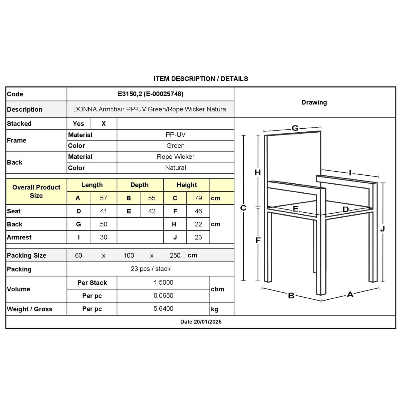 Ε3150,2 DONNA Πολυθρόνα-Pro PP-UV Πράσινο/Rope Wicker Φυσικό
