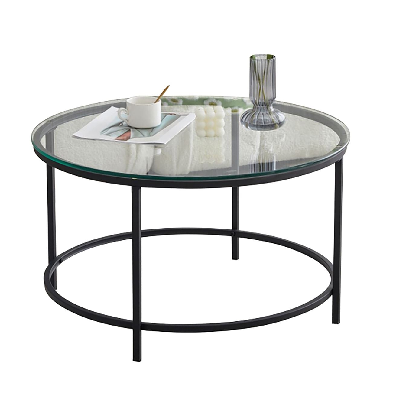 ΕΜ562 DORSET Τραπ.Σαλονιού Φ70x40cm Μέταλλο Μαύρο/Γυαλί Clear