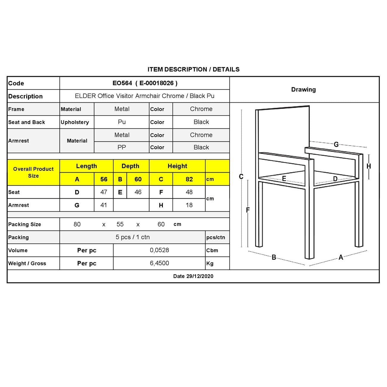 ELDER Πολυθρόνα Γραφείου Επισκέπτη Χρώμιο, PU Μαύρο (56x60x82cm)